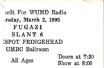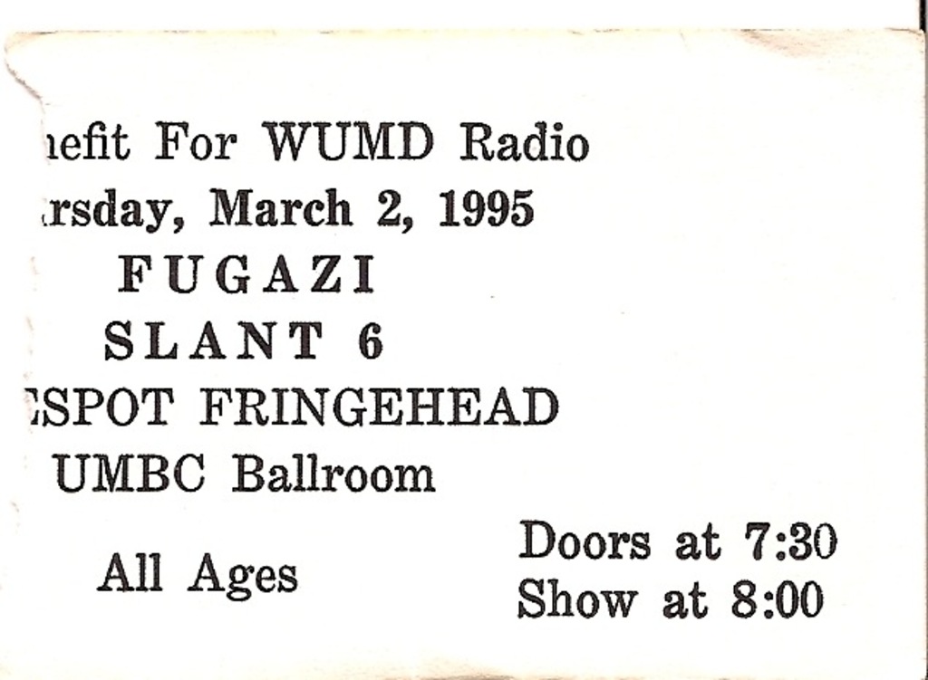 This recording documents a one-off Fugazi gig or singular regional date at the onset of 1995. A benefit for WMBC, the college run radio station of the University of Maryland, Baltimore County, and the first out of an incredible 123 live performances that year, making it the third longest annual touring schedule in Fugazi history (versus 129 gigs in 1990 an 134 shows in 1993).