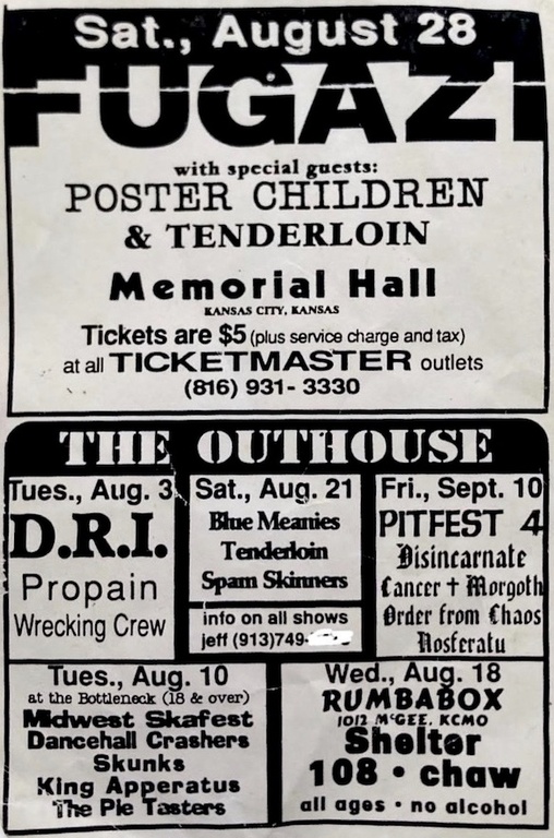 In the Encore of the 2001 KCMO show (https://dischord.com/fugazi_live_series/kansas-city-mo-usa-41801) Guy tells the story of what happened after this show - briefly, one of the people who was running the venue burned Joey Picuri in the face with a cigar, took his video camera, and pulled a gun on Guy. This must have been a really rough night.