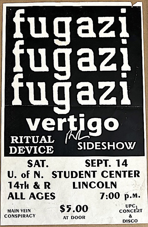 Coming off of a six week summer/fall tour which had the band dashing across the US and Canada, Fugazi capped it off with a really cool show in Lincoln, Nebraska. A first for the band, having just played Omaha two times before in the Cornhusker State.